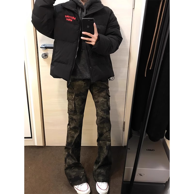 美式复古迷彩微喇工装裤男款春秋vibe高街裤子cleanfit修身牛仔裤
