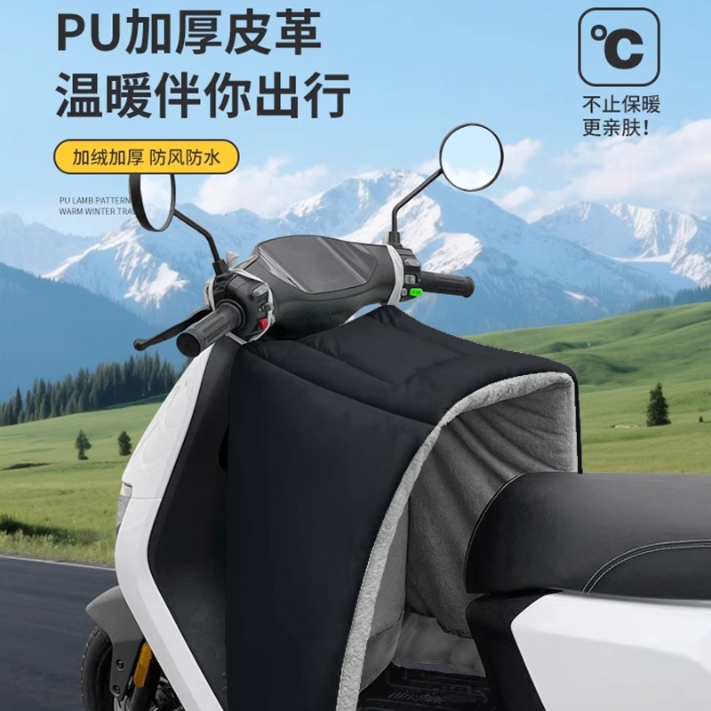 电动车挡风被冬季加厚PU皮外卖分体防水摩托车护腿防风罩防寒加绒