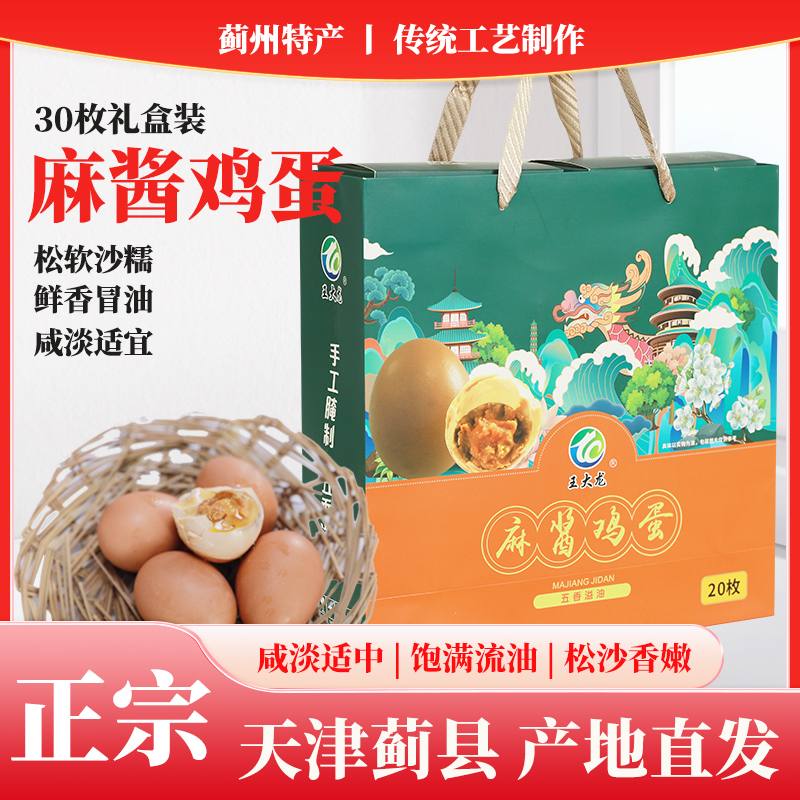 王大龙正宗麻酱鸡蛋正宗天津蓟县蓟州特产即食腌制咸蛋烤鸡蛋麻将