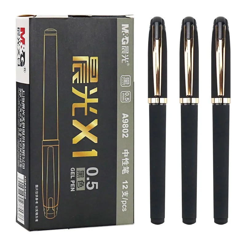 晨光商务办公签字笔0.5/0.7/1.0mm子弹头黑色中性笔学生碳素笔X1