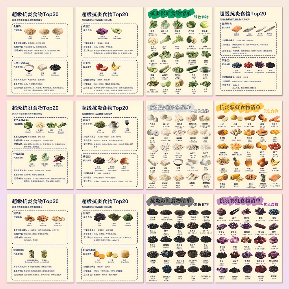 大张版抗炎食物清单贴纸健康饮食营养膳食高纤维万能公式装饰贴画