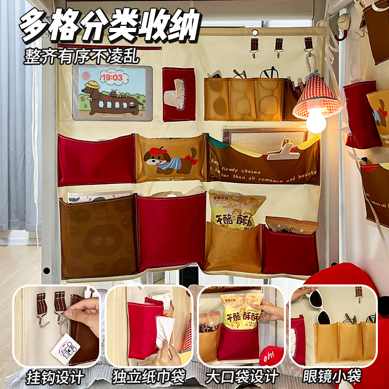 学生宿舍床上收纳挂袋上下铺床头墙上壁挂零食平板杂物分格置物袋
