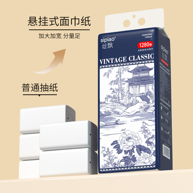 丝飘悬挂式国风抽纸家用实惠装餐巾面巾纸商用可擦手卫生纸加量装