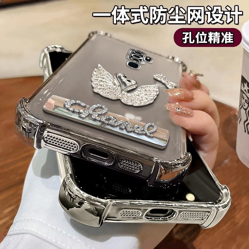 适用OPPOA11手机壳闪钻天鹅电镀四角防摔A11X简约硅胶气囊全包oppoA11闪钻字母电镀支架新款保护套