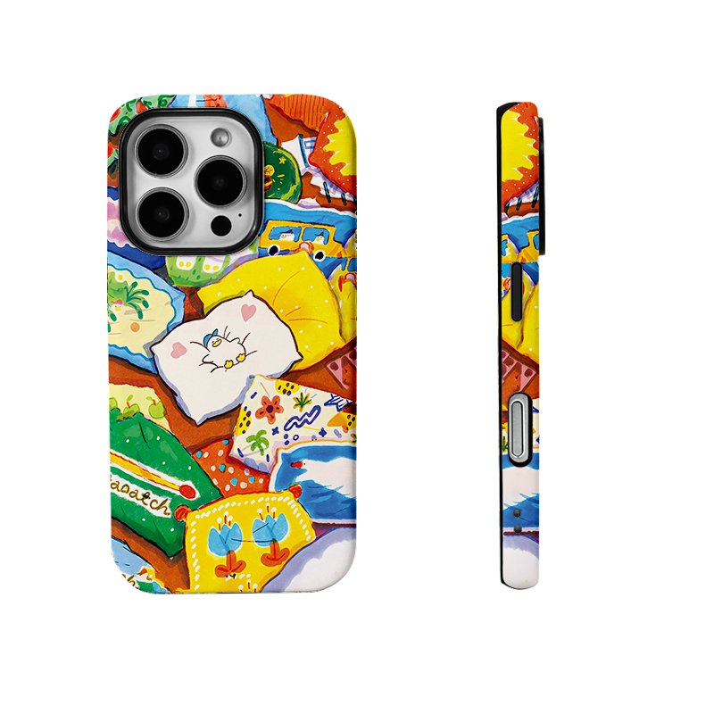 舒服躺在抱枕的可爱鸭菲林二合一手机壳适用苹果17nova14华为p70mate60小米15opporen14ovivo荣耀300iPhone16