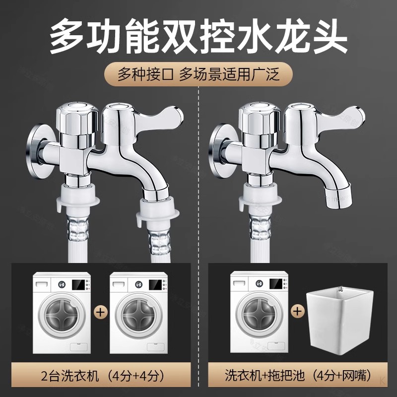 洗衣机水龙头专用一进二出阳台拖把池双控双出水一分二转接头两用