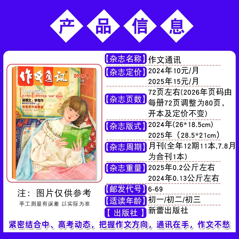 作文通讯初中版杂志2025年2026全年/半年订阅/现货2024年1-12月 初一初二初三7-9年级备考作文素材经典热点时事押题过刊书刊