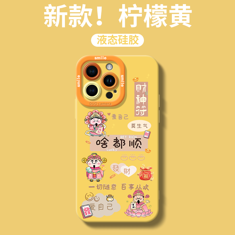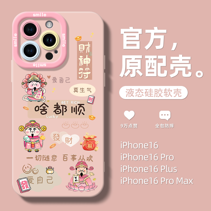 圣铂适用苹果16promax手机壳啥都顺财神苹果15系列保护套14Pro硅胶软壳13外壳12的高级感11女款14plus安专用p