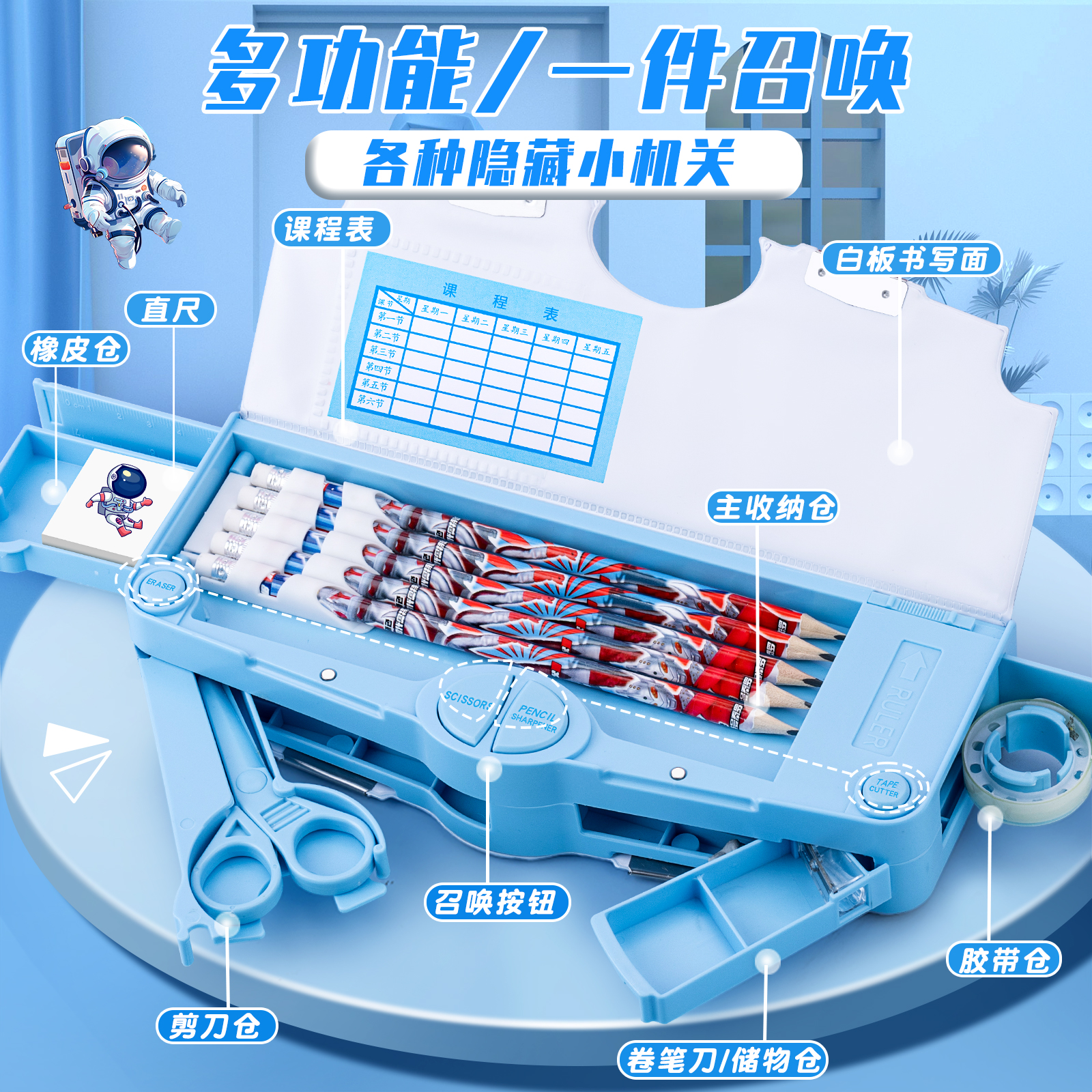 多功能文具盒密码高科技宇航员笔盒男孩款小学生用带密码袋男孩黑科技网红自动塑料铅笔盒男童高级有密码锁