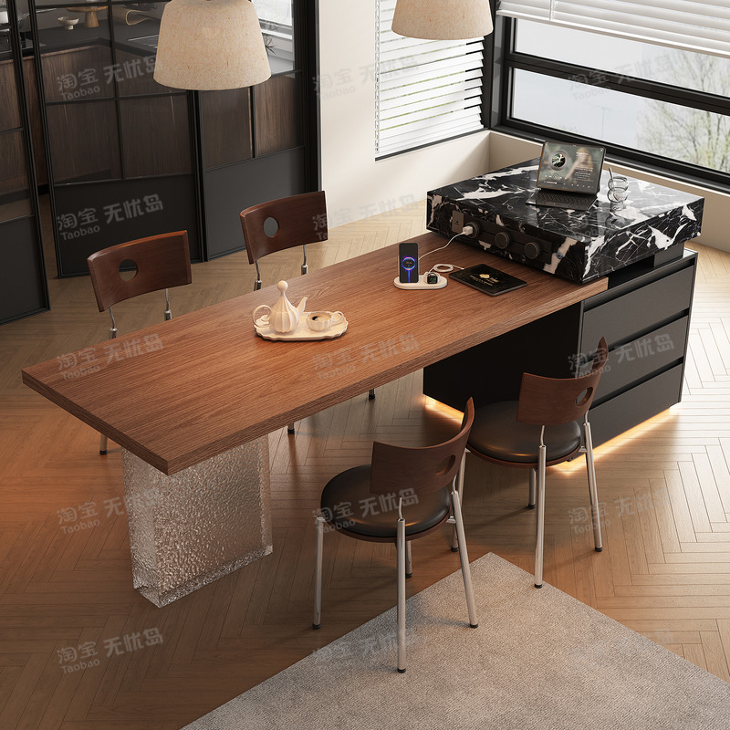 意式岛台餐桌一体家用可伸缩小户木纹岩板倒台定制开放式厨房导台