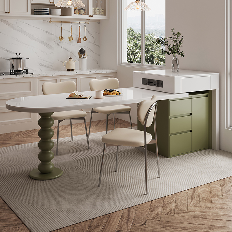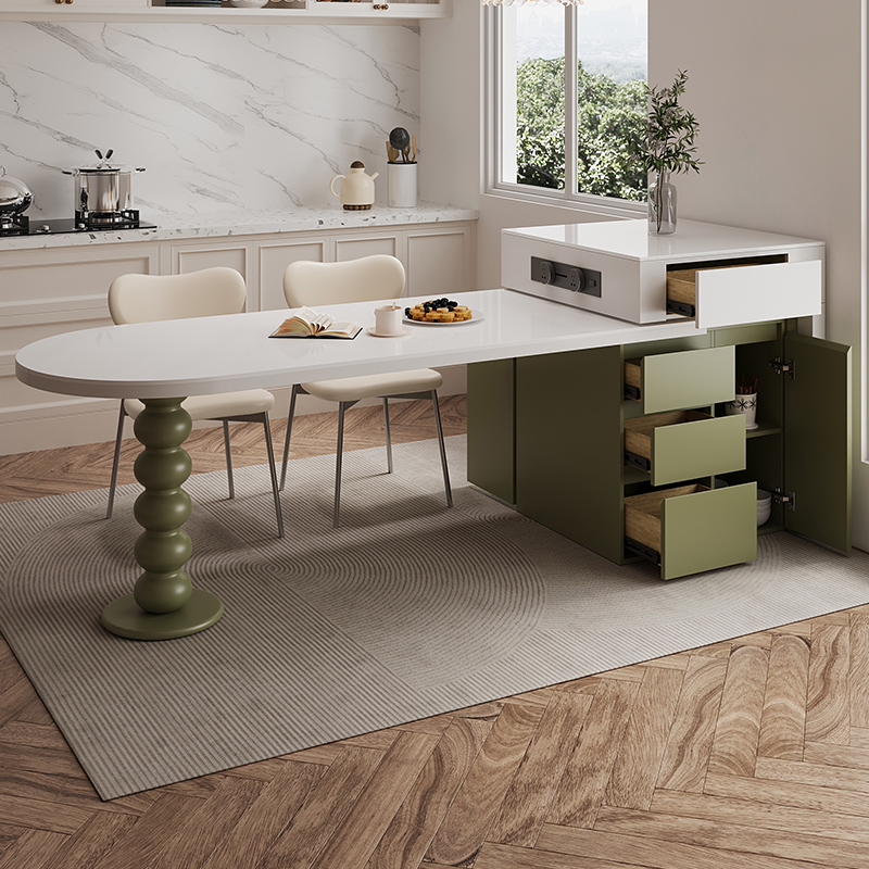 法式中古风岛台餐桌一体可伸缩家用小户型半圆导岩板倒台厨房吧台