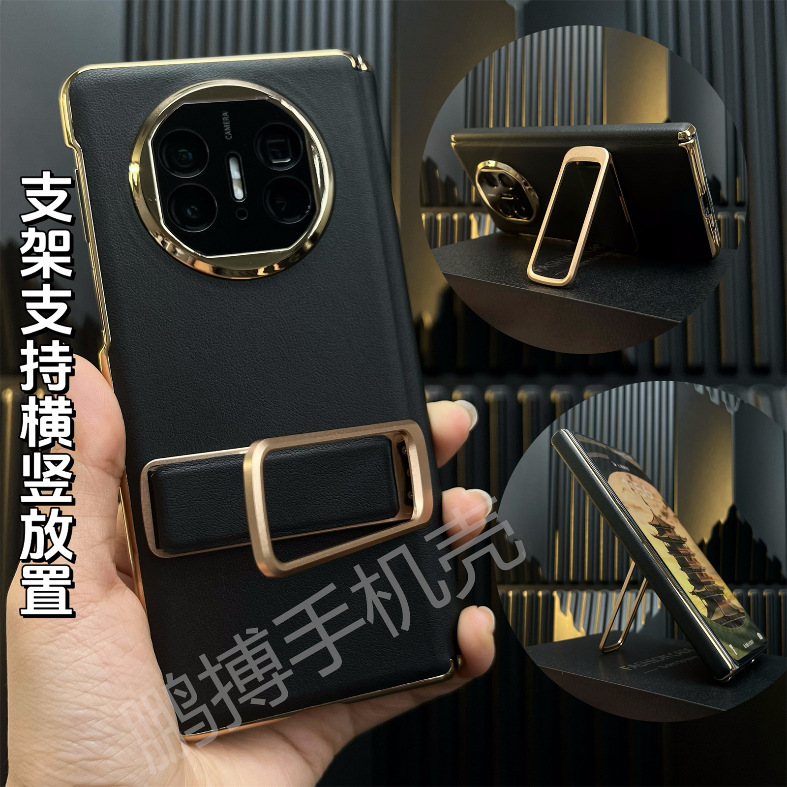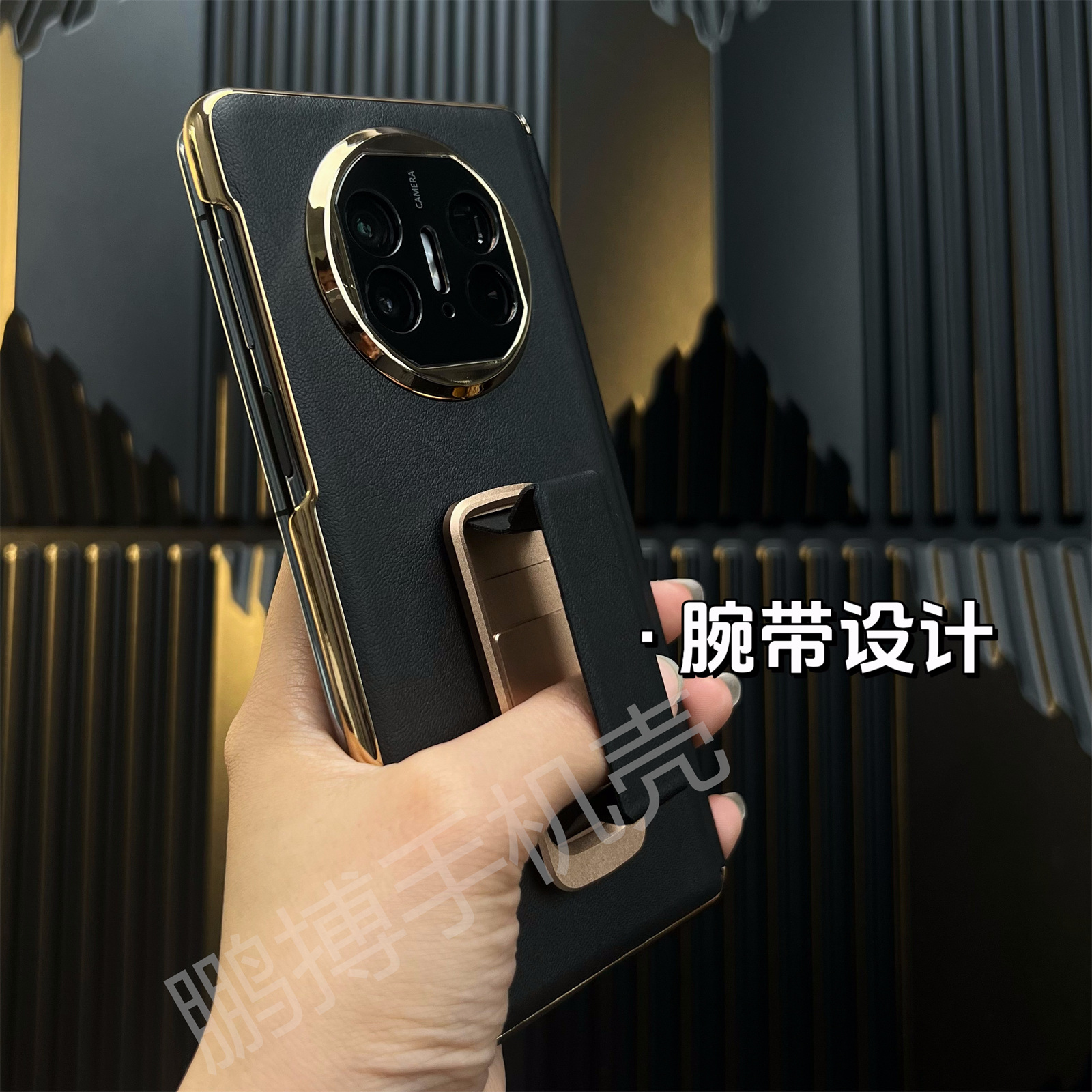适用华为MateX6真皮单后壳x5折叠屏外壳带中轴保护套X3新款轻奢商务简约大气皮壳带支架腕带防摔防刮花皮壳