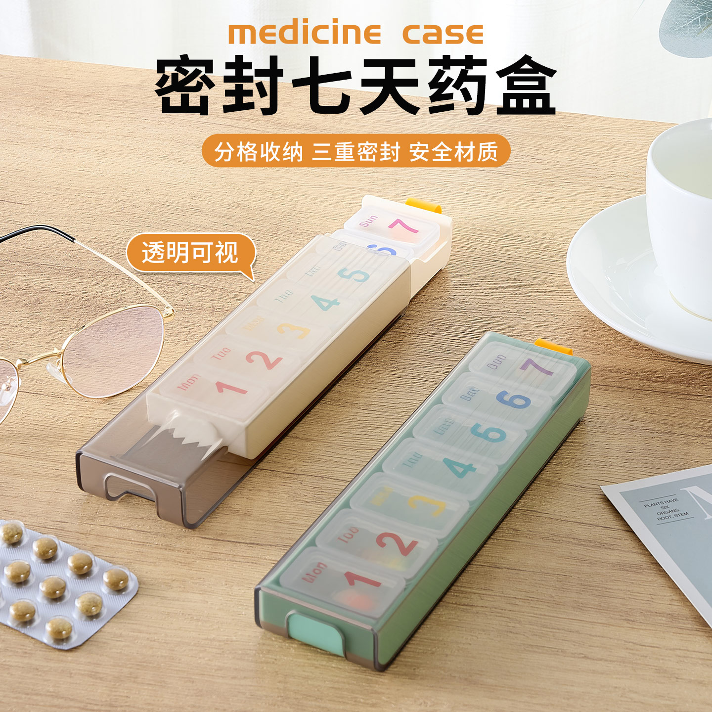 便携式药盒迷你款小药品分装盒大容量随身携带一周保健收纳神器
