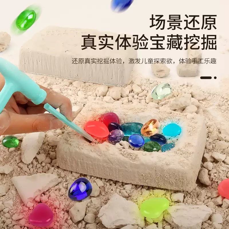 考古盲盒益智宝石夜光矿石化石挖掘挖矿儿童玩具手工男女孩寻宝藏