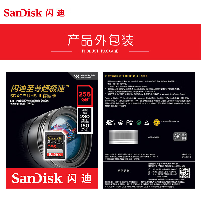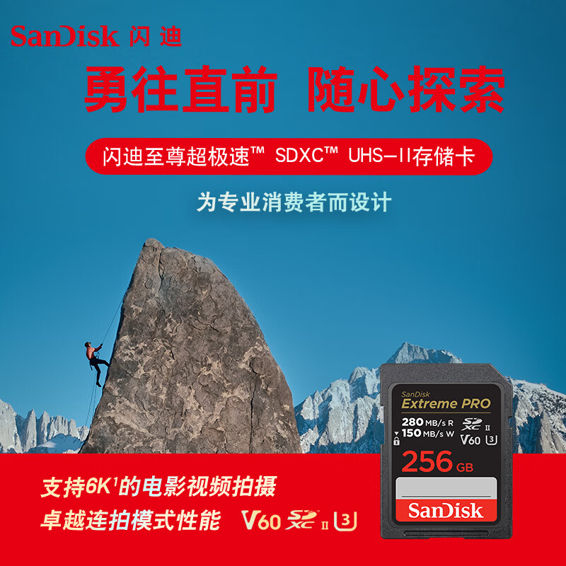 闪迪sd卡512g256g128g64g单反相机内存卡6K4K拍摄像存储卡V60V30