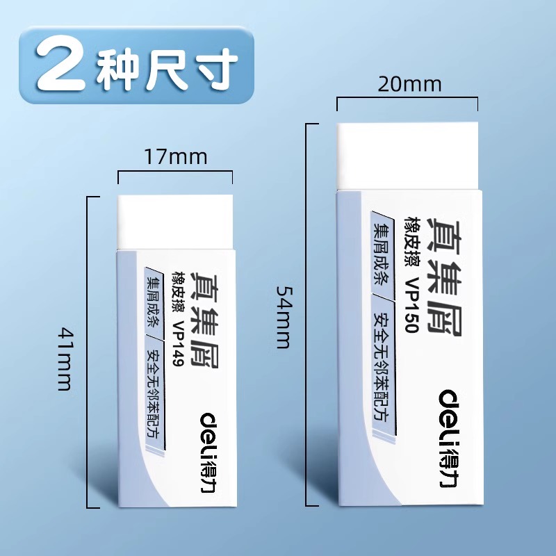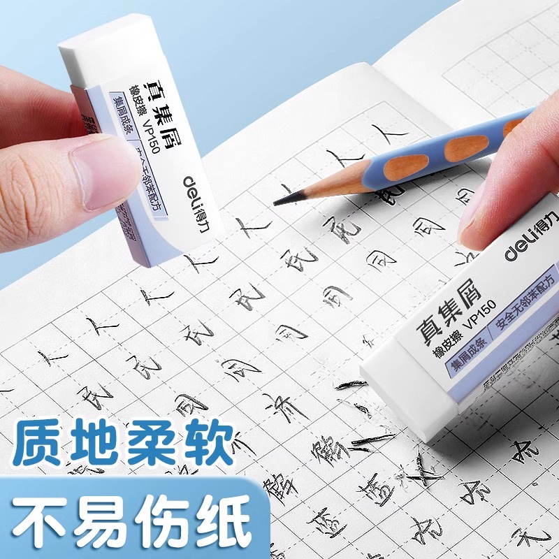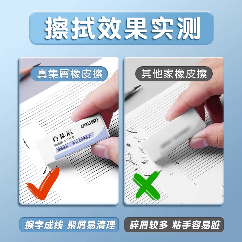 得力真集屑橡皮擦小学生专用大号擦字干净成线不易留痕少屑橡皮中学生用绘图美术专用学习文具用品柔软易擦