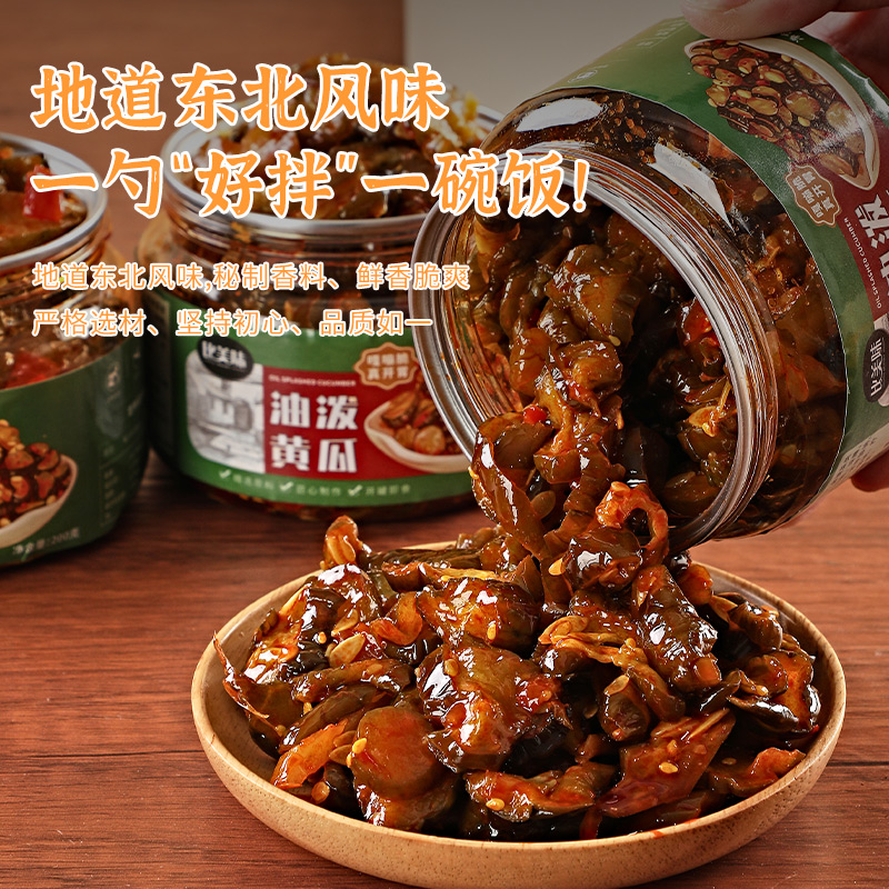 比美味油泼黄瓜咸香甜辣蜜汁脆黄瓜腌菜开胃菜即食下饭酱菜咸菜