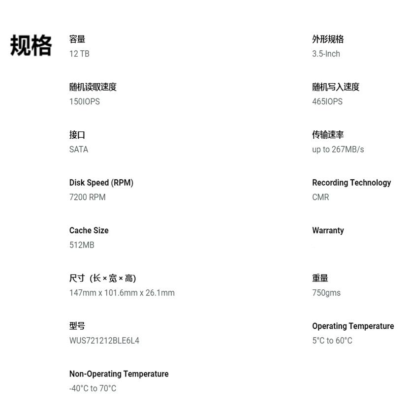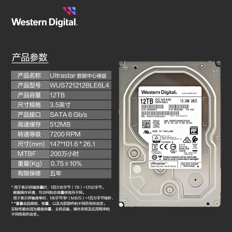国行WD西数12TB HA340 WUS721212BLE6L4 台式机NAS企业级空气硬盘