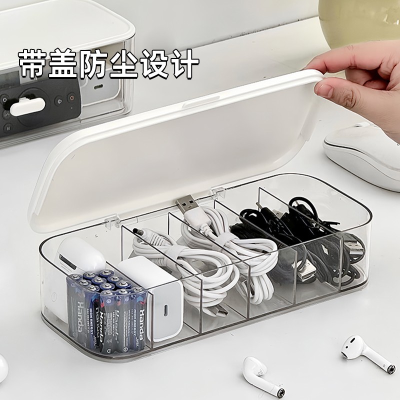 数据线收纳盒桌面充电器手机电源线整理神器亚克力带盖防尘理线器