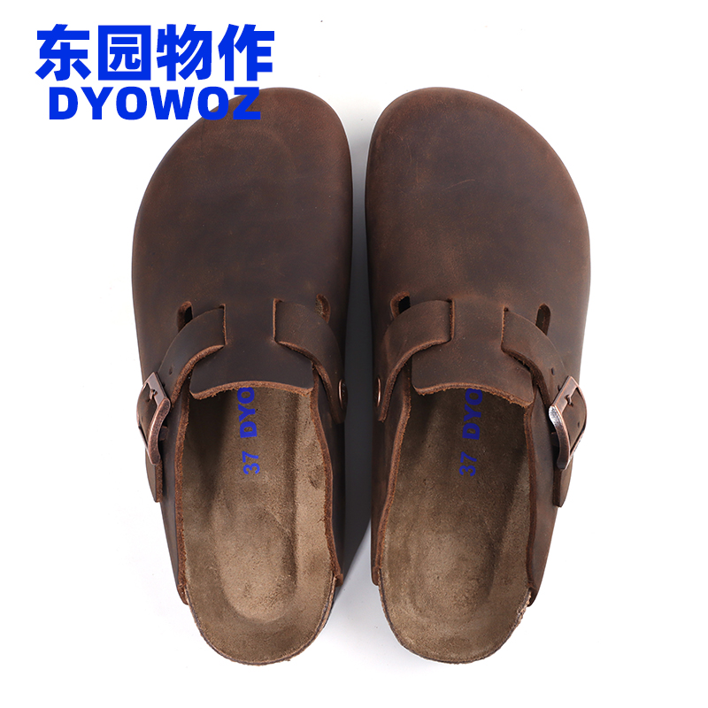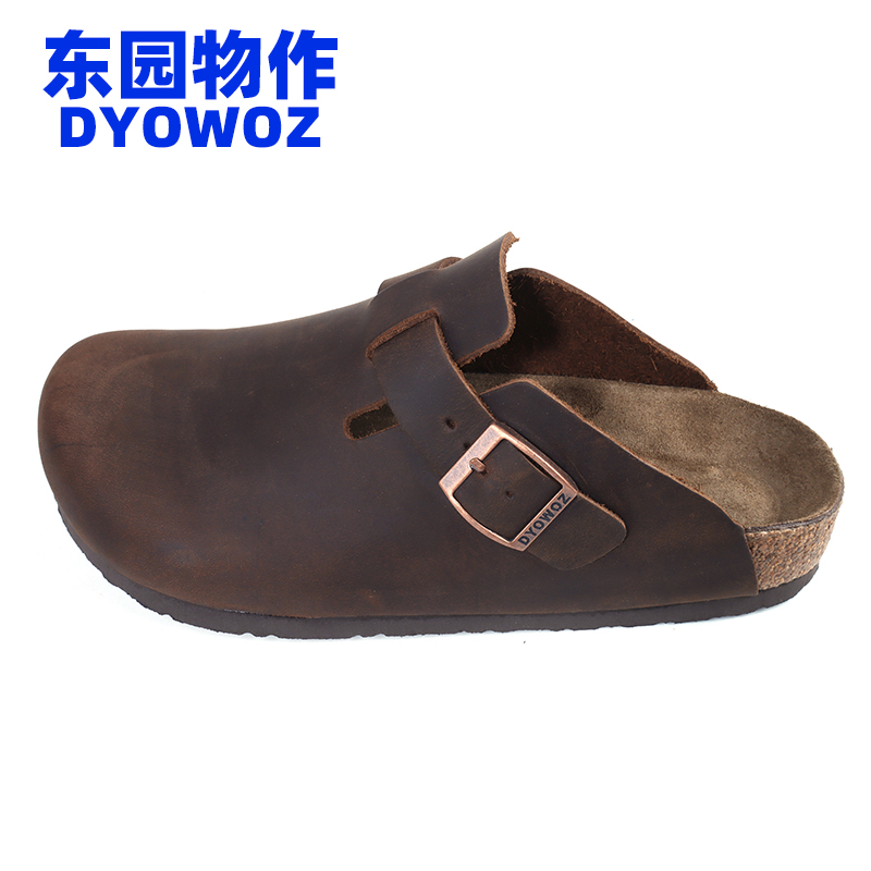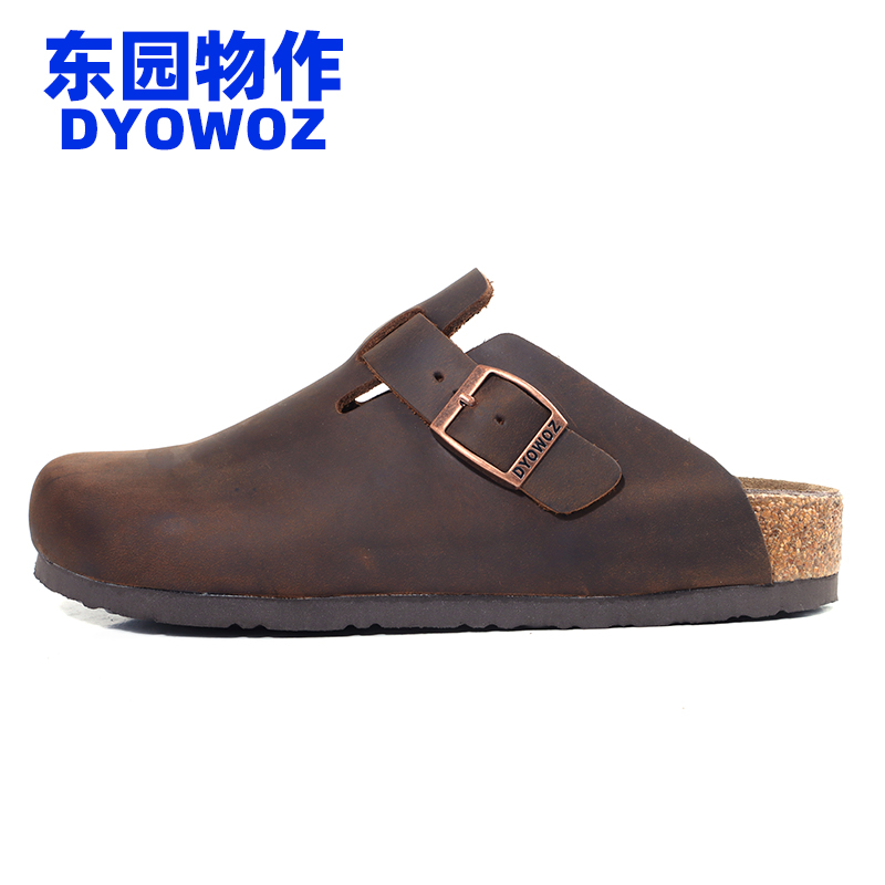 DYOWOZ/东园物作软木拖鞋真皮休闲日系复古包头鞋舒适外穿勃肯鞋