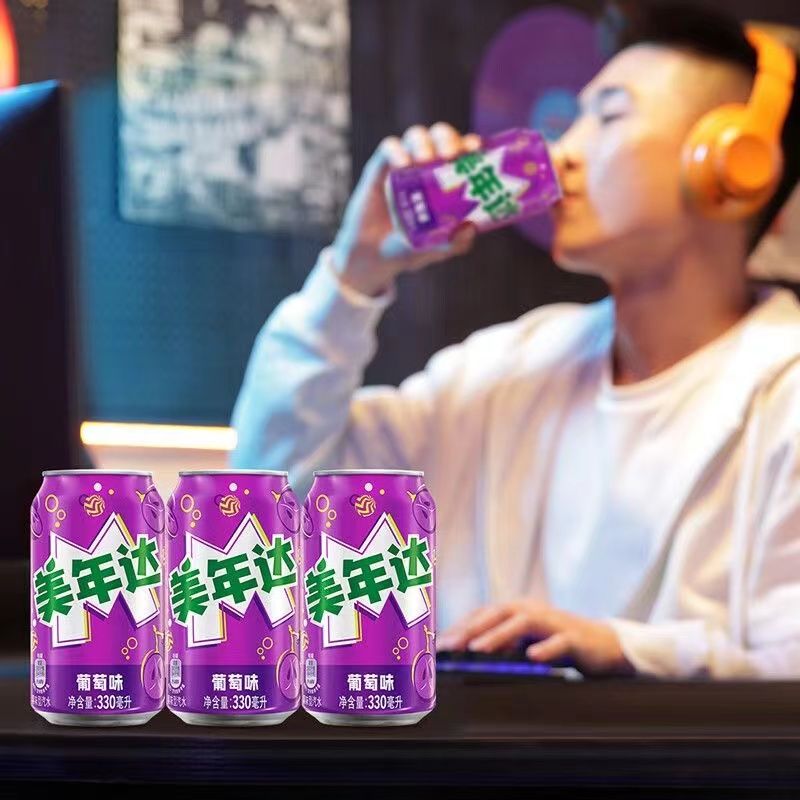 百事可乐七喜美年达葡萄味330ml易拉罐装夏日碳酸饮料多规格