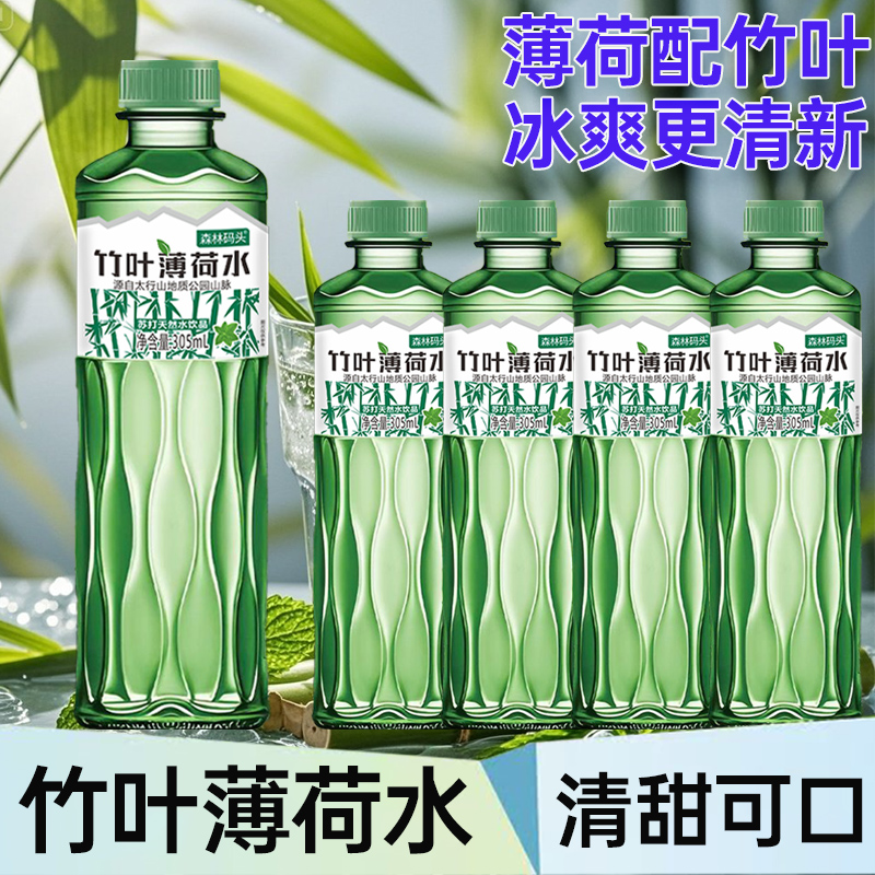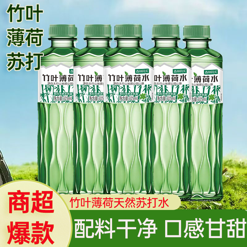 新品竹叶薄荷水305ml整箱无糖原液整箱批苏打天然水弱碱柠檬饮品