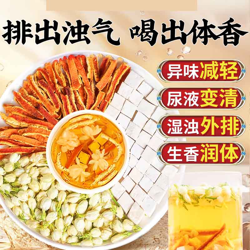 茉莉花茯苓陈皮茶官方正品茉莉花茯苓橘皮排浊气体香茶包女泡水喝
