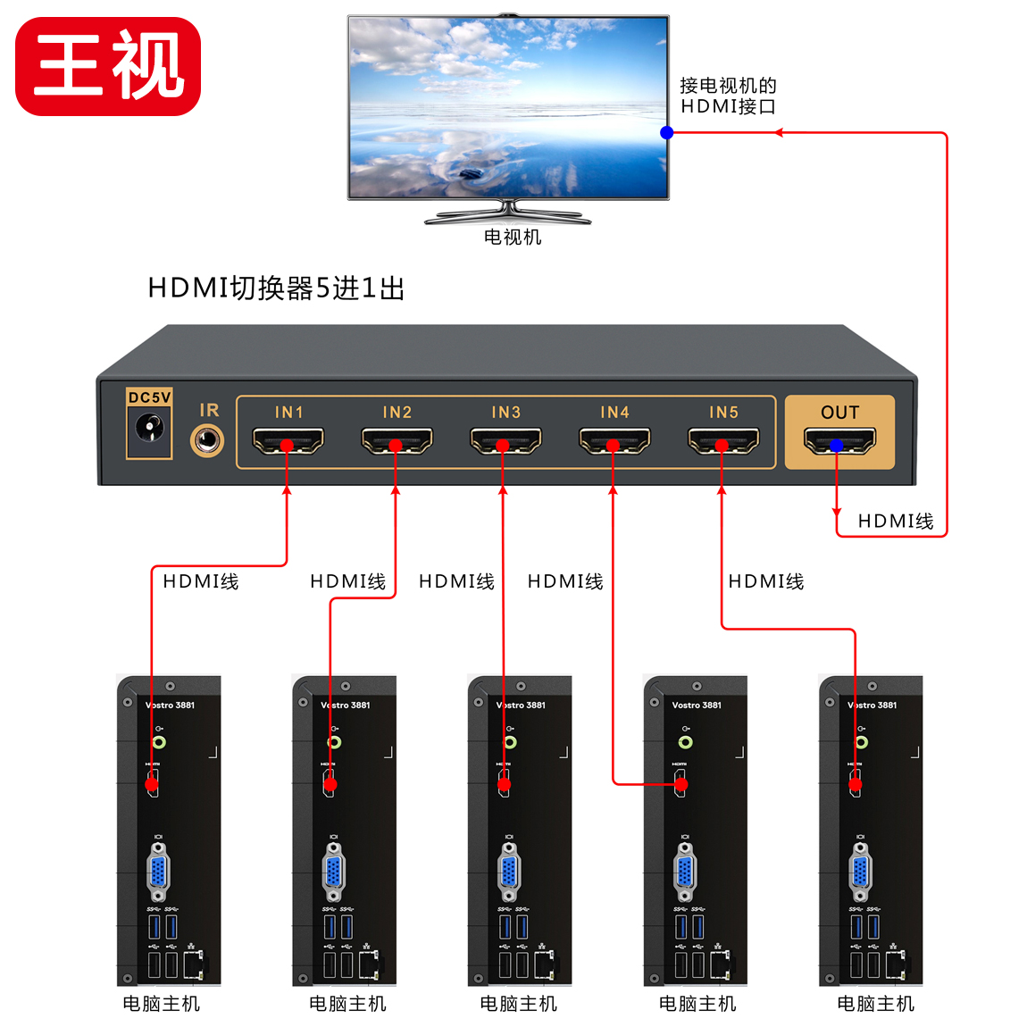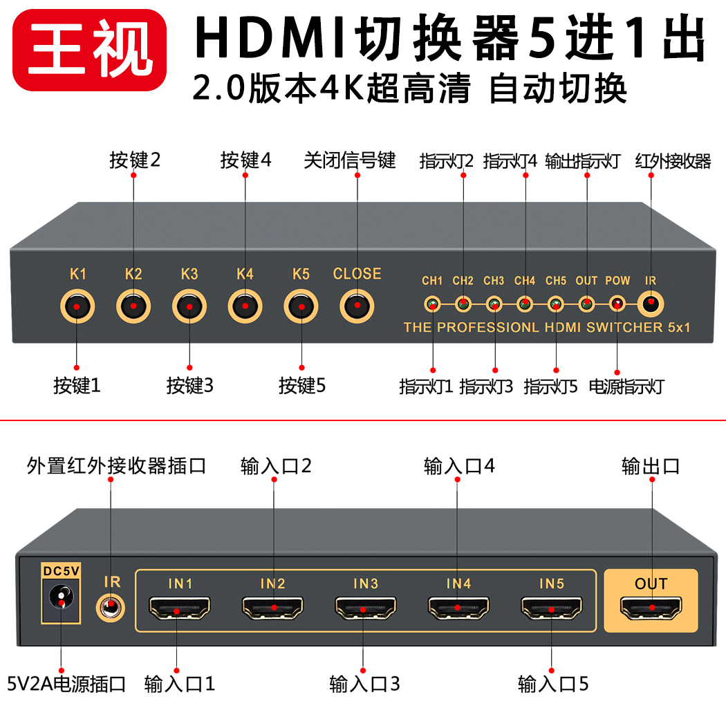 HDMI切换器2.0高清三四五八九进一出4K音视频1/2/3/5/6/8/9口电脑显示器电视机投影仪LED大屏会议监控王视