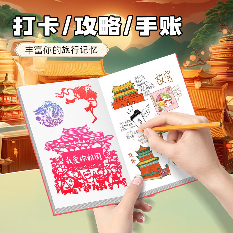 旅行打卡盖章本全国城市纪念签到登记簿博物馆集章册印章收集高颜值故宫西安著名景点参观国风文创空白留念册