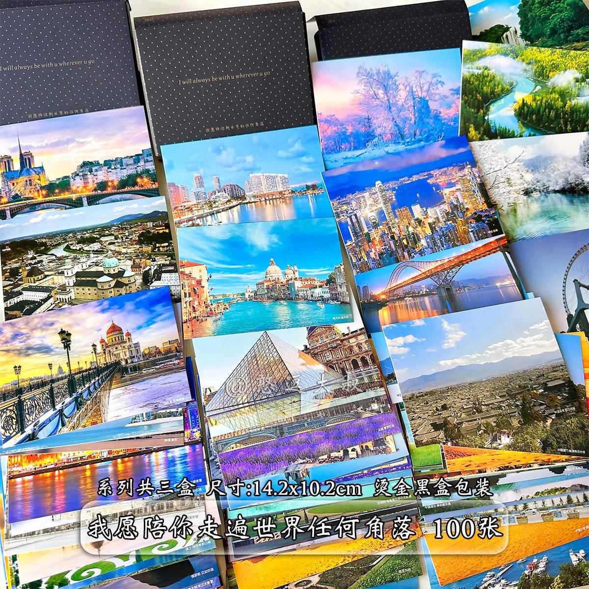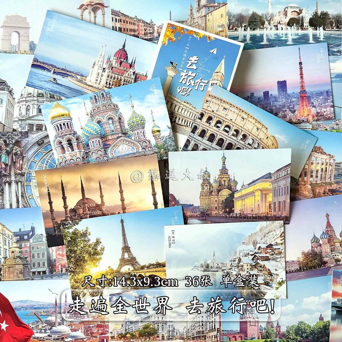 90张中国各地著名城市地标风景明信片世界名胜古迹贺卡生日卡片