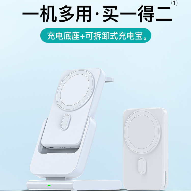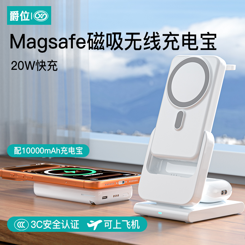 爵位 磁吸无线可拆卸充电宝快充三合一充电器手表底座适用苹iPhone超薄小巧便携式magsafe移动电源3c认证