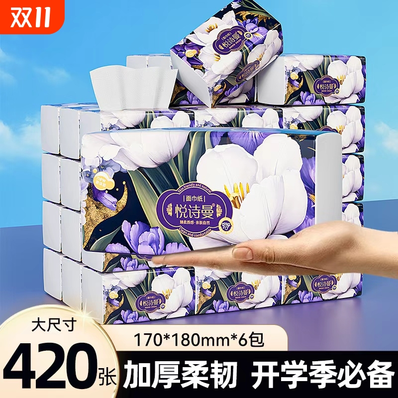 漫花大包抽纸家用实惠装擦手餐巾纸卫生纸巾整箱批面巾纸抽