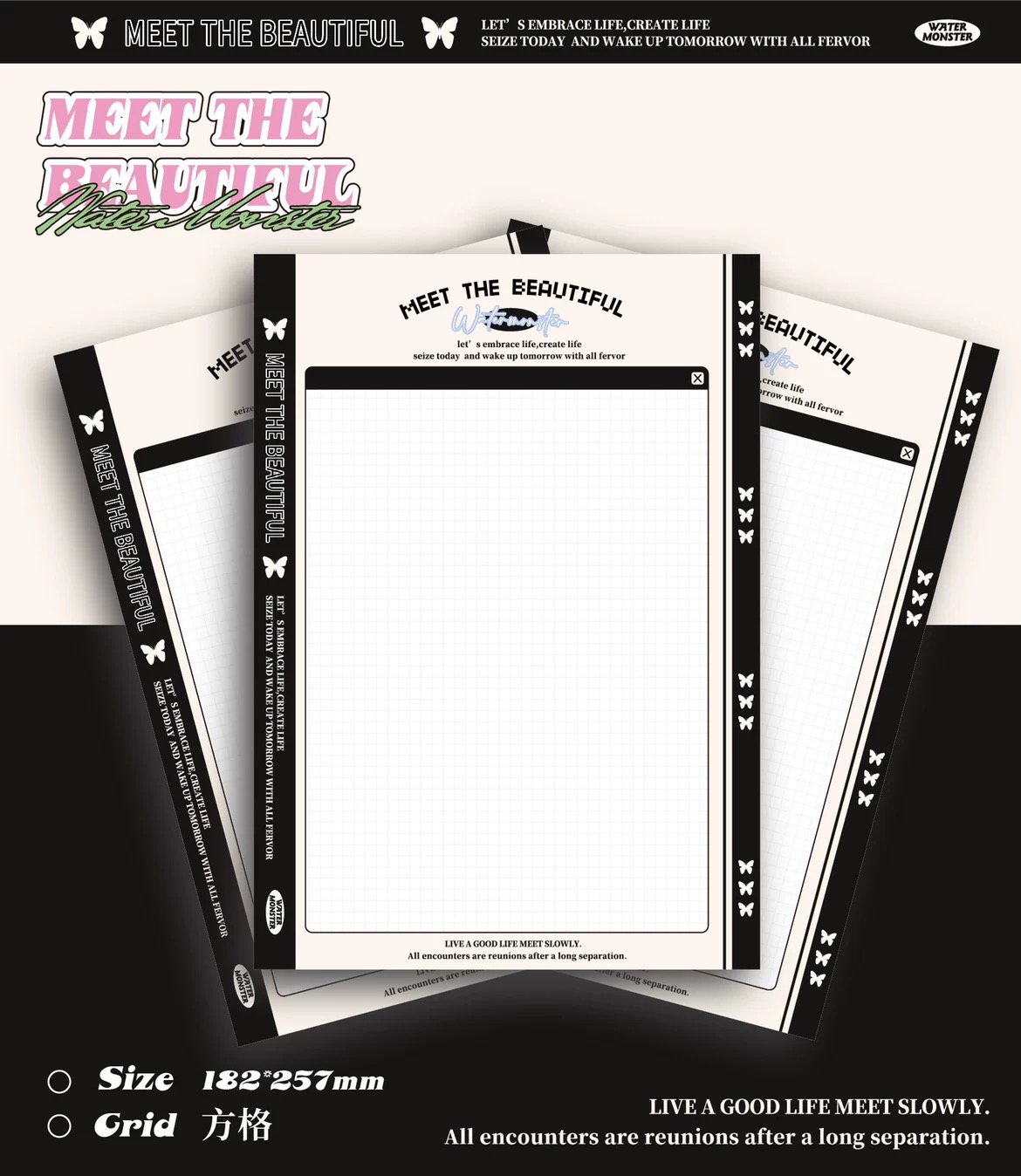 上翻活页笔记本可拆卸方格本网格本子高颜值初中生专用高中格子小方格方形本复古考研加厚2025新款文具草稿纸