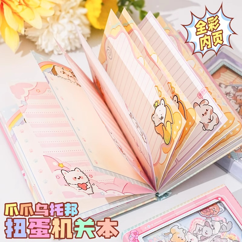 扭蛋机关本2025新款儿童卡通摇摇笔记本子学生解压便携彩页日记本亚克力乌托邦口袋手账本