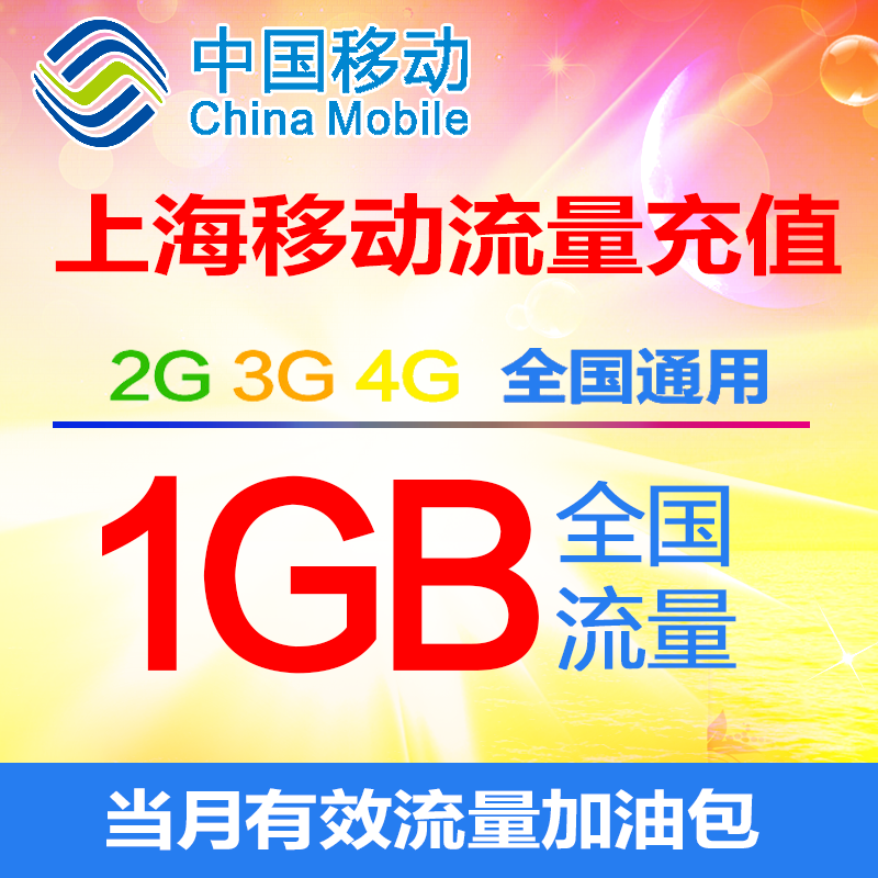 上海移动流量充值1GB全国流量2G3G4G通用加油包当月有效