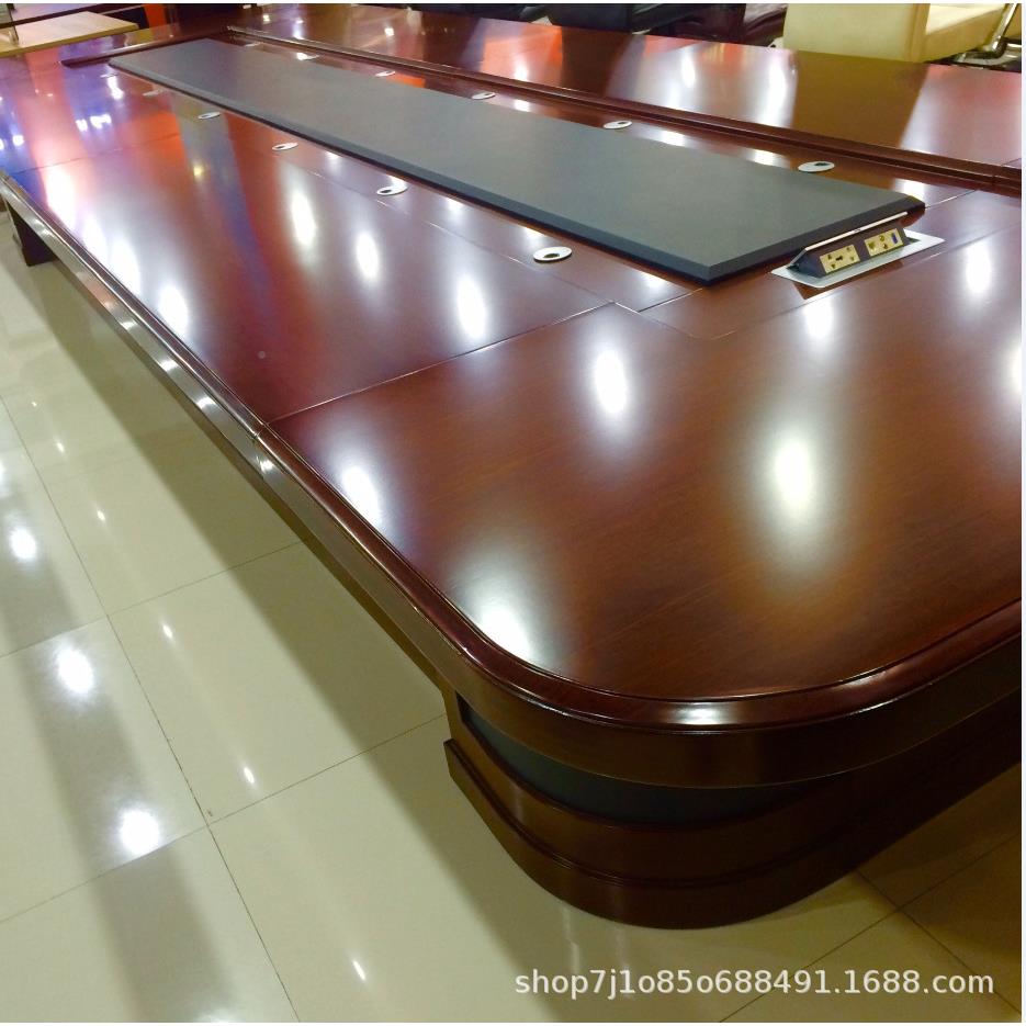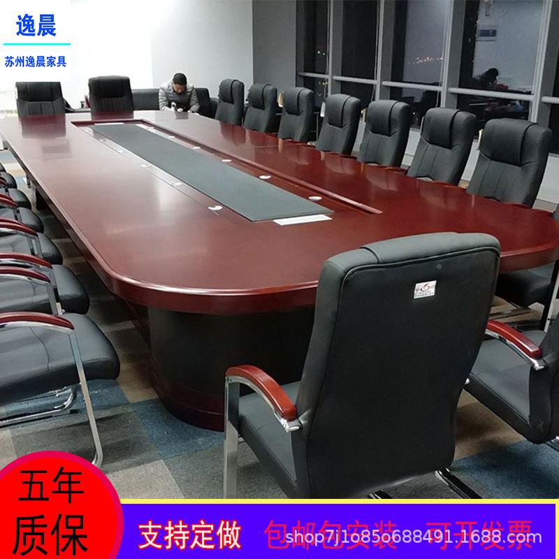 办会议桌大型培训会议桌多能油实木公皮桌椭功圆形会议桌YC1014椅