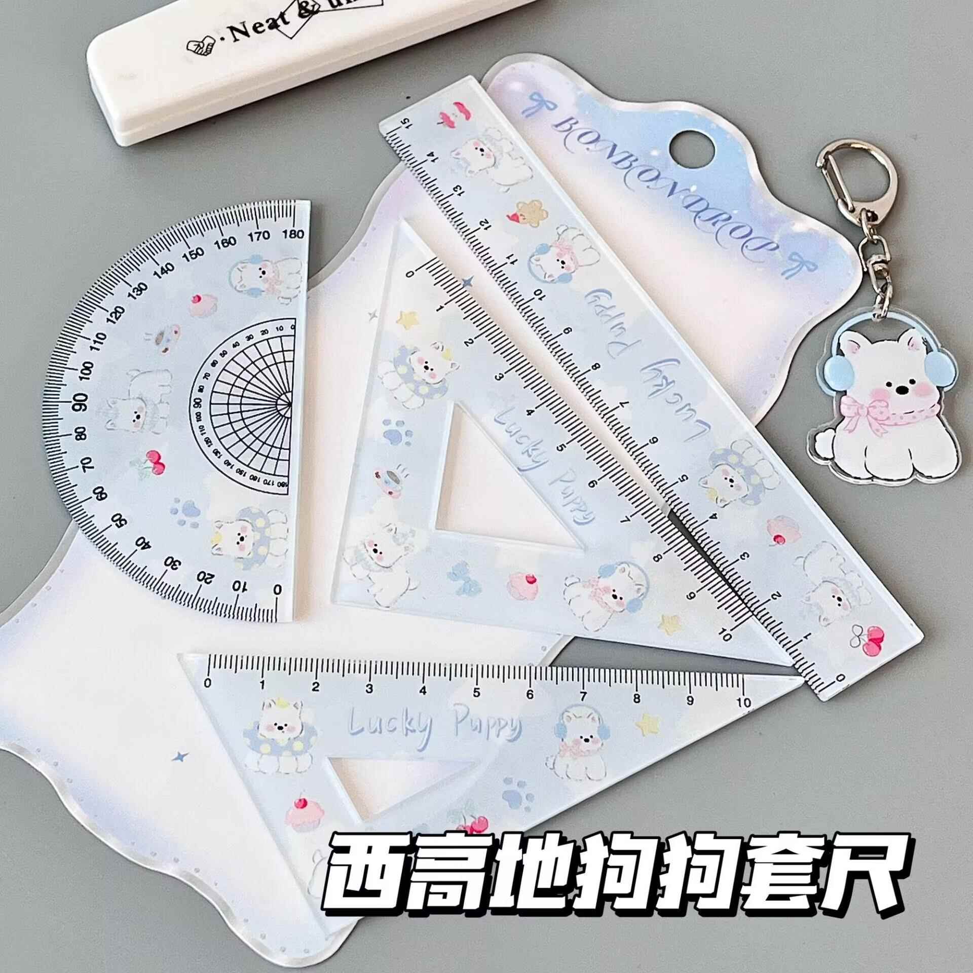 西高地狗狗自嘲熊卡通尺子套装小学生专用ins风高颜值多功能套尺