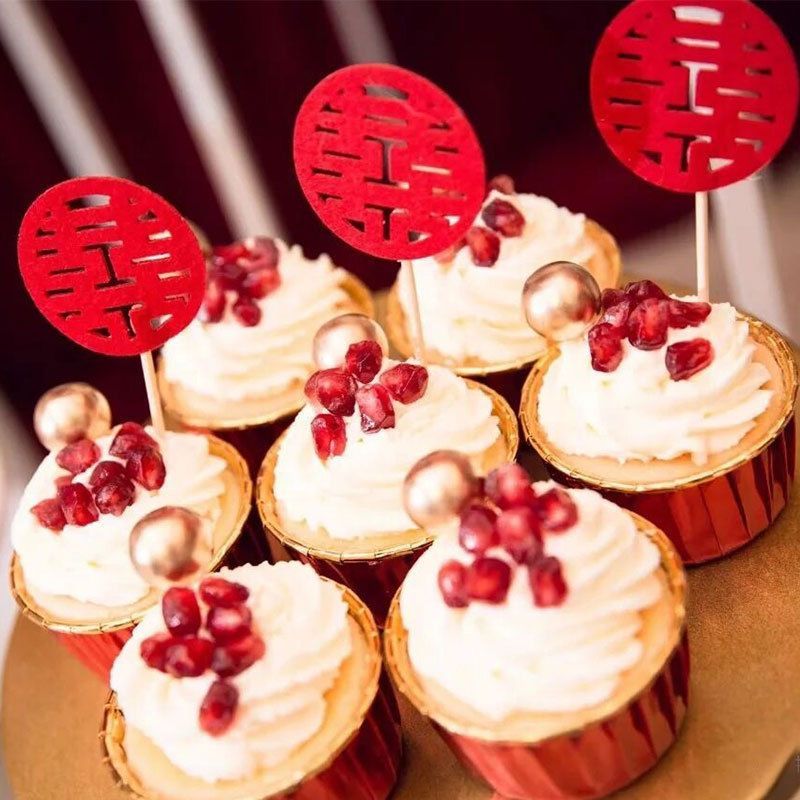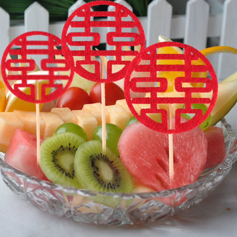 摆盘装饰冷盘果签喜字竹签喜签结婚囍字我们双喜订婚乔迁创意新婚
