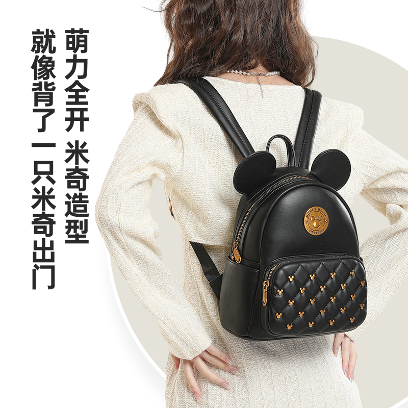 迪士尼米奇黑色大容量双肩包女新款大学生书包户外旅行轻便小背包