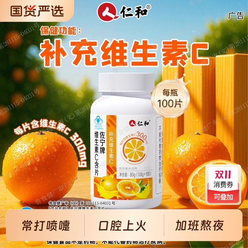 仁和维生素c咀嚼片维c成人儿童免疫力官方旗舰店100片正品增强vc