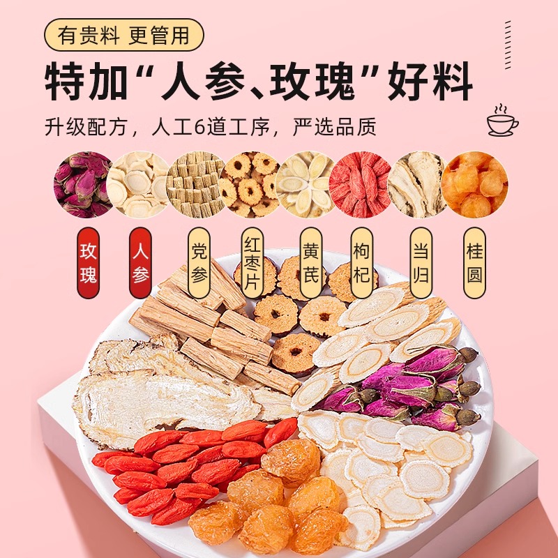 红参黄芪麦冬红枣枸杞茶旗舰店正品养生茶可搭配调理气血产品使用