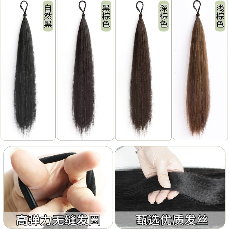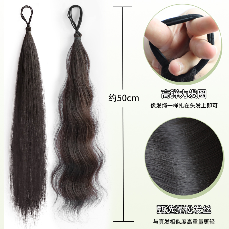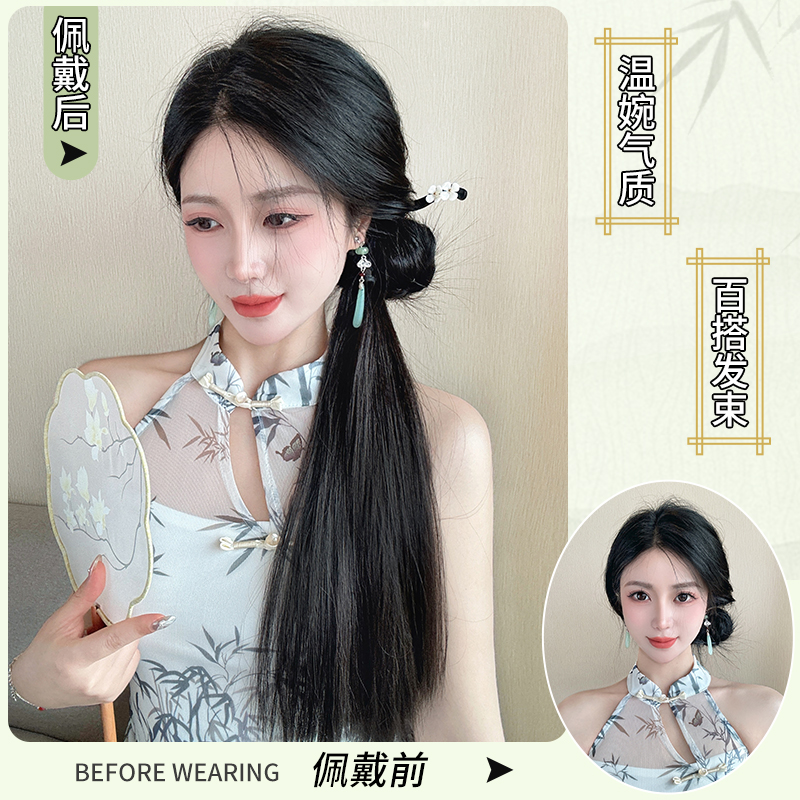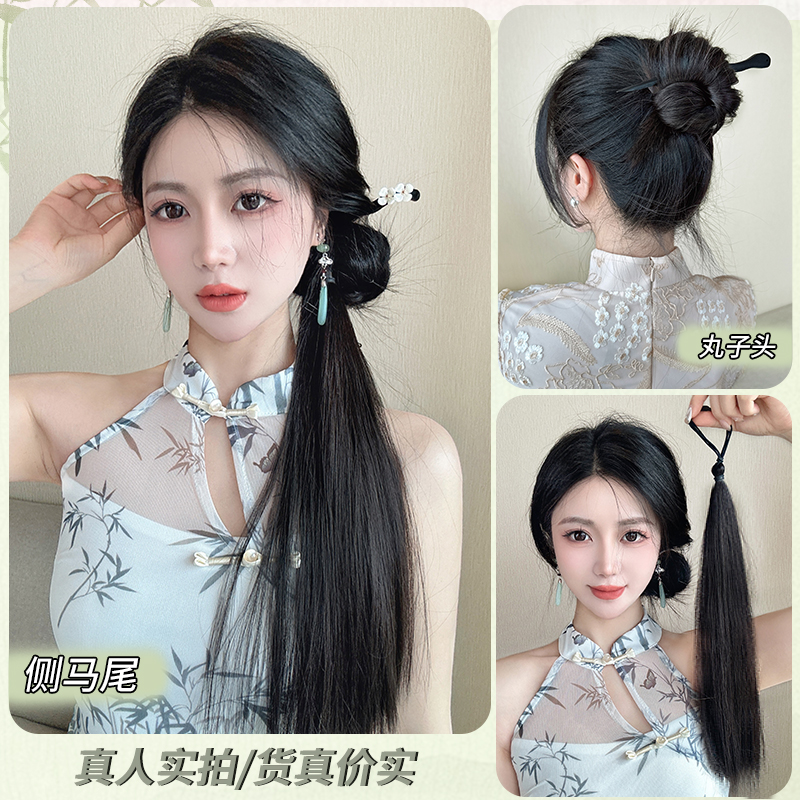 新中式侧边长发马尾假发女发量少量仿真发发束旗袍低马尾辫卷发