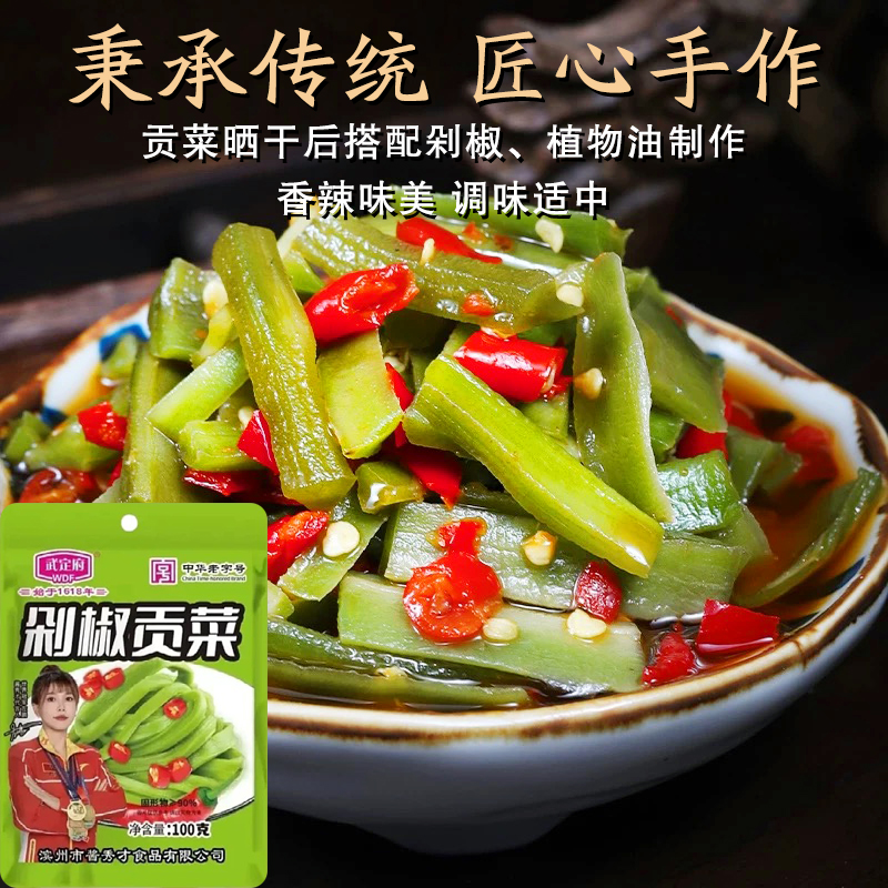 剁椒贡菜下饭菜开袋即食咸菜酱菜榨菜嘎嘣脆香辣蔬菜袋装神器辣味