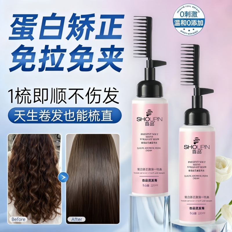 蛋白矫正直发膏免拉家用软化剂头发柔顺剂修复毛躁定型拉直一梳直