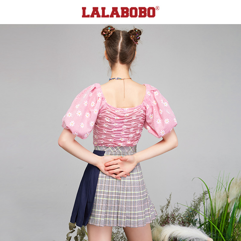LALABOBO春季新品可爱时尚夏的魔法精灵格子梭织衬衫|L21A-WSWC12
