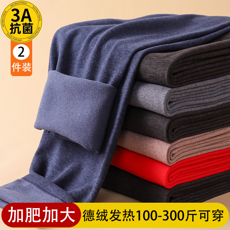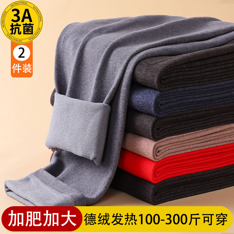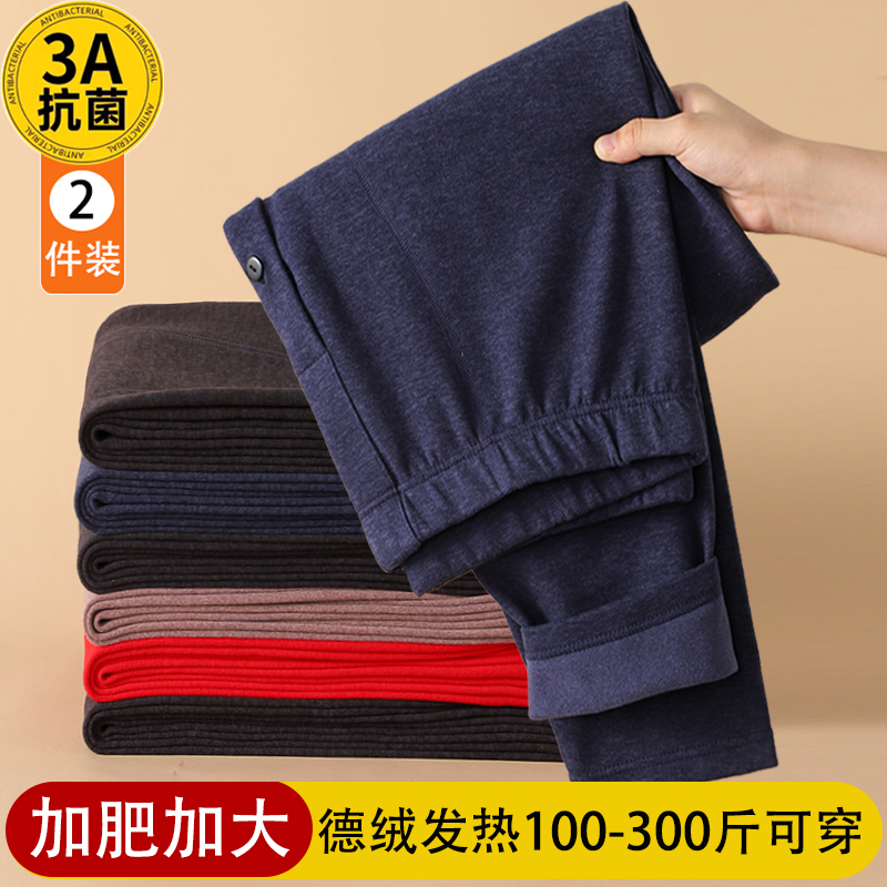 加肥加大德绒秋裤男士保暖裤特大码高腰宽松加绒加厚打底裤冬薄款