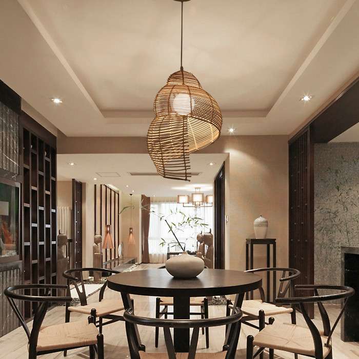 东南亚田园风格竹编灯藤艺海螺吊灯创意藤艺现代茶楼餐厅客厅吊灯