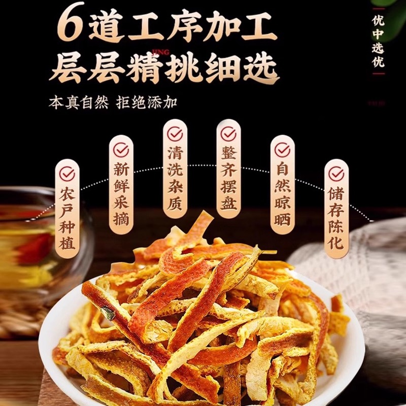 新会陈皮丝干橘子皮橙皮九制老陈皮干汤料泡水喝正品中药材旗舰店