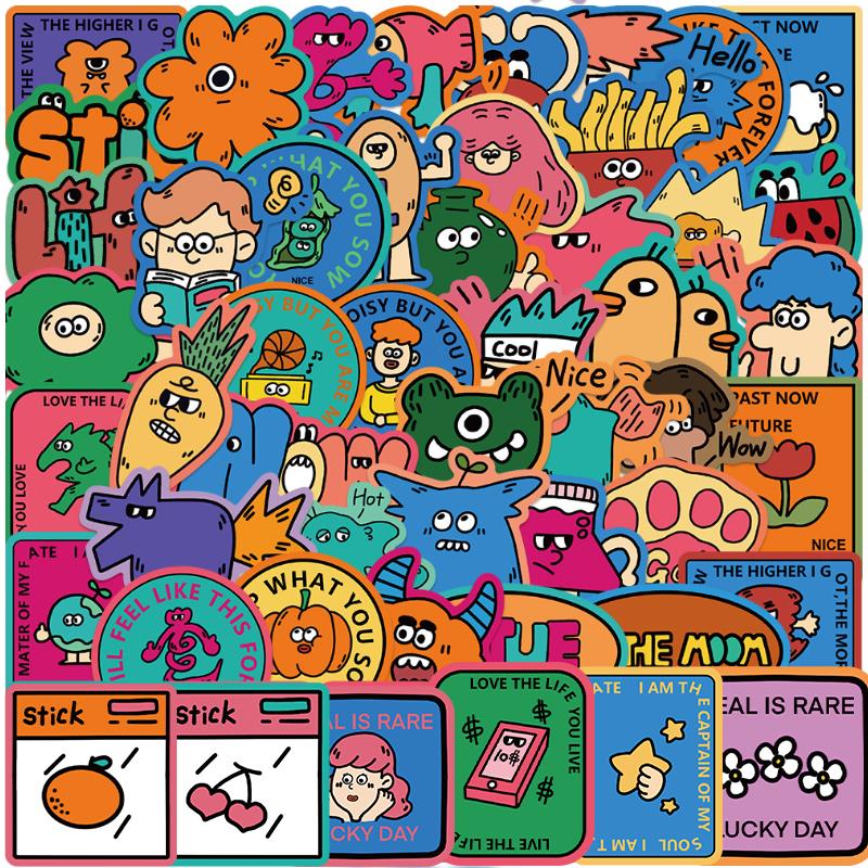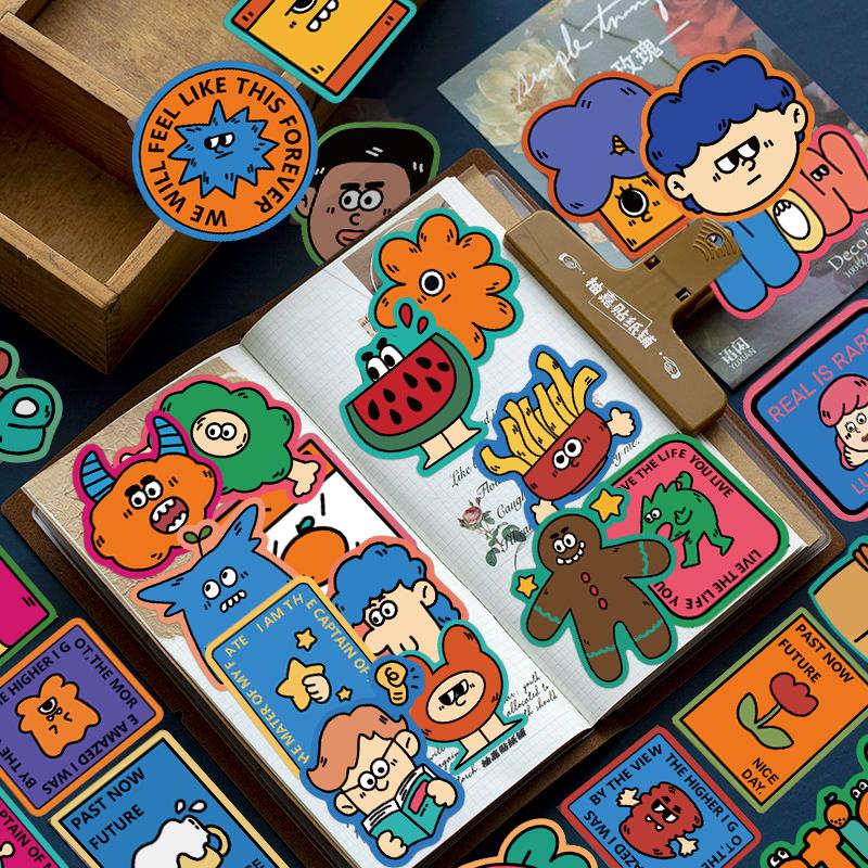 90张奇奇怪怪东西贴纸丑萌搞怪笔记本手机壳水杯手账贴纸防水贴画