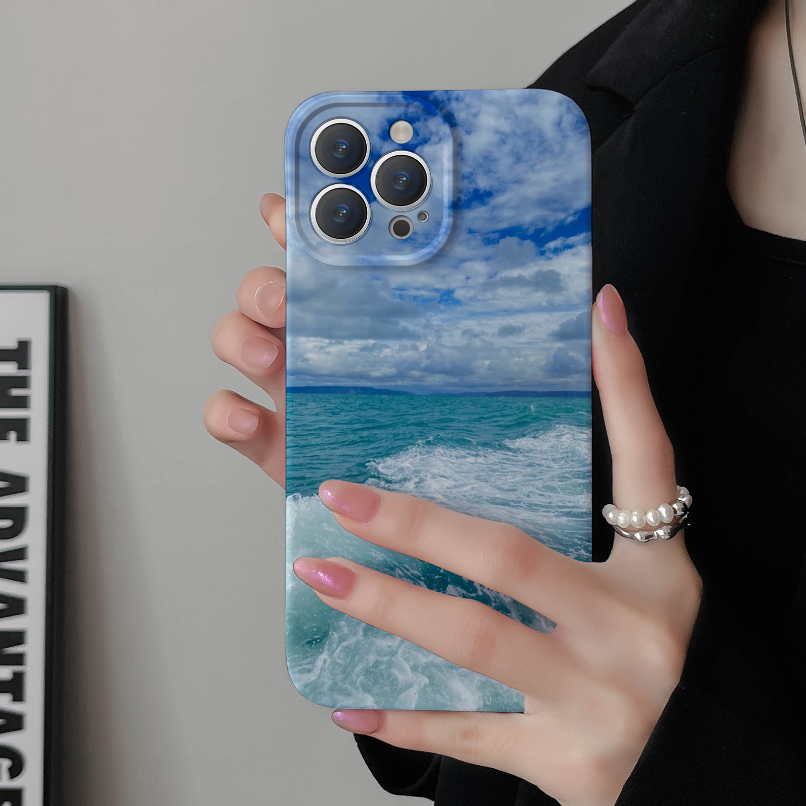 适用苹果oppo华为荣耀iphone17 15promax/14pro/nova10/p50E/mate50/iqoo12新款情侣手机壳风景蓝色大海天空
